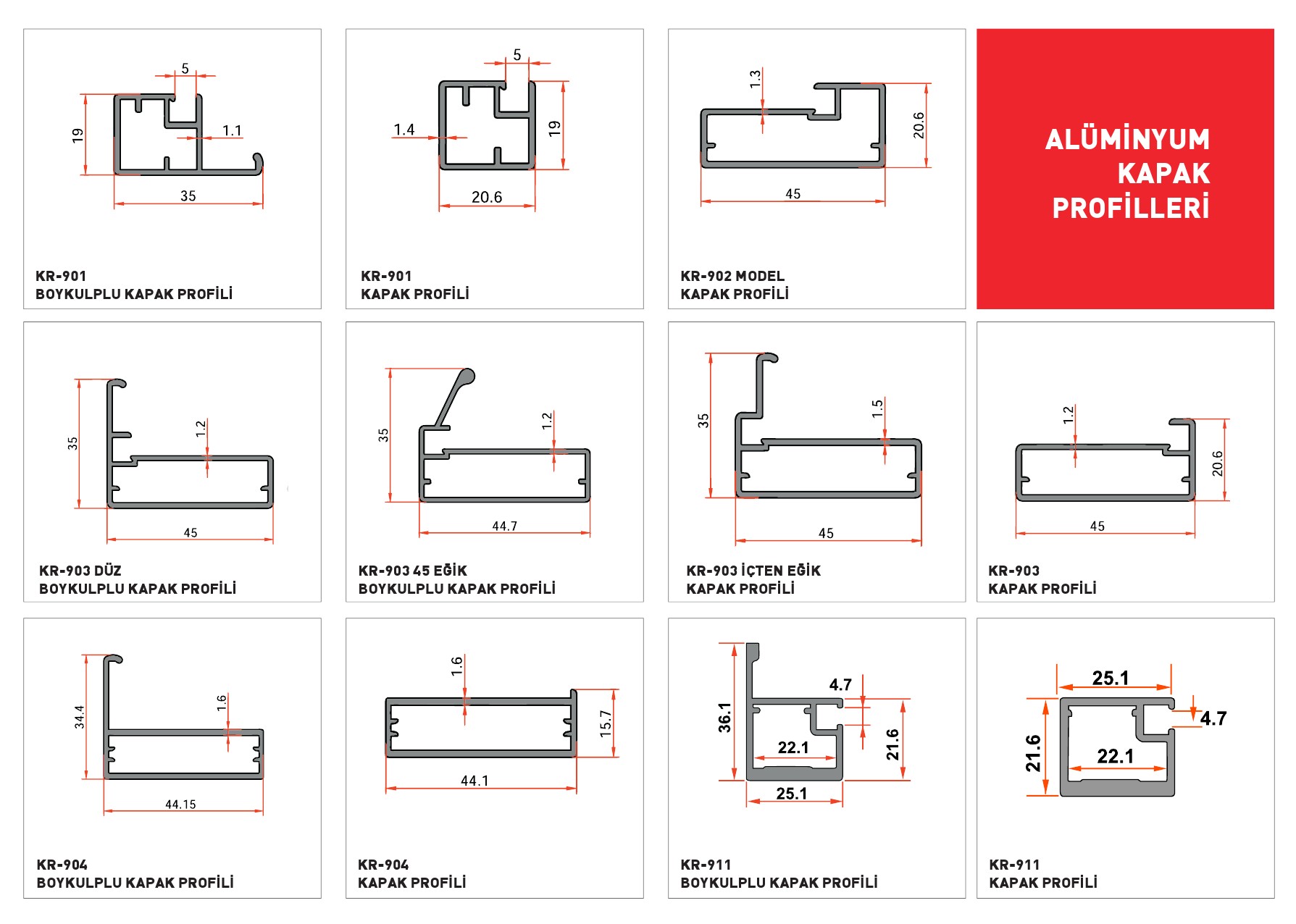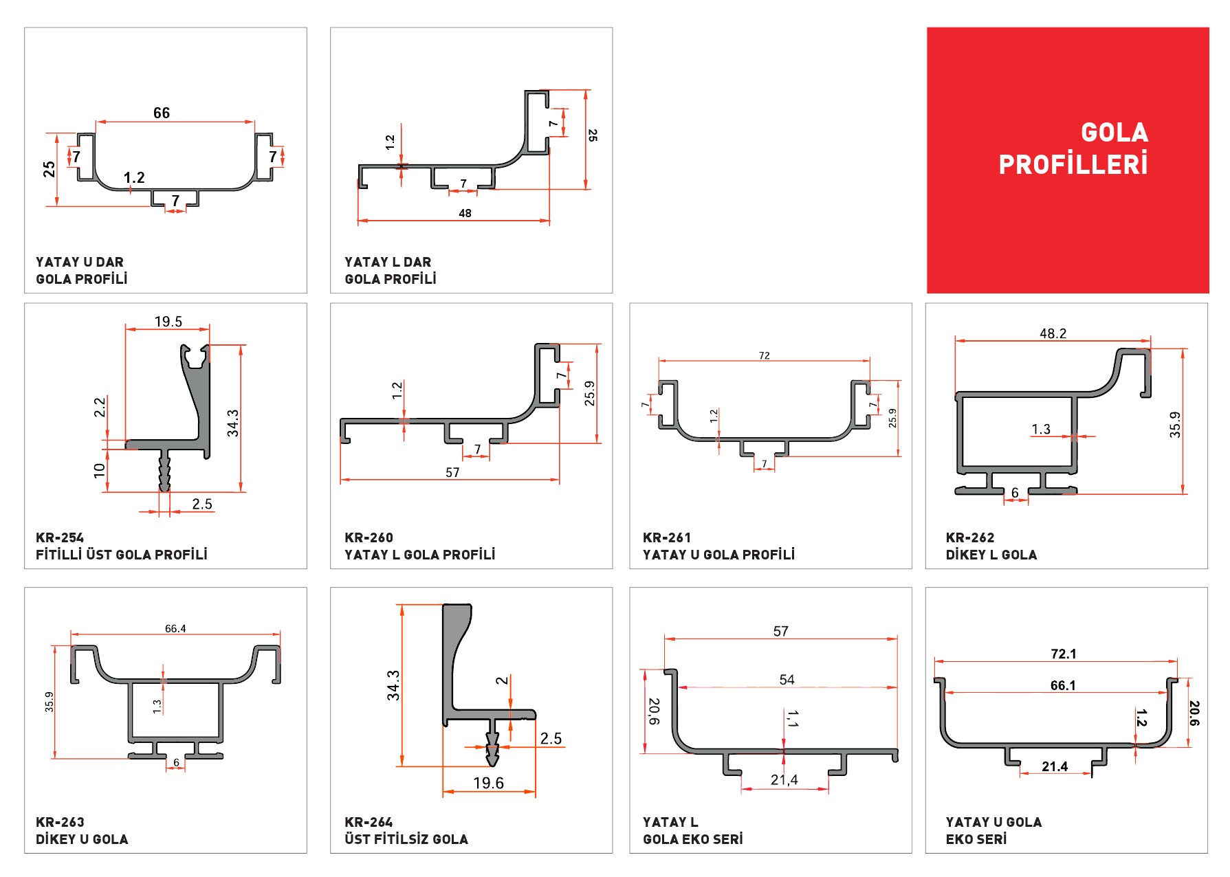 Üretimini gerçekleştirdiğimiz profillerin teknik çizim gruplandırması. Daha fazla bilgi için lütfen iletişime geçin...